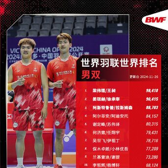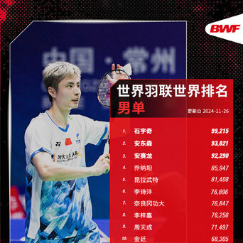 #组合初度登顶宇宙第一# 宇宙羽联公布2024年第48周宇宙名次买球网体育信息,国羽四项名挨次一。