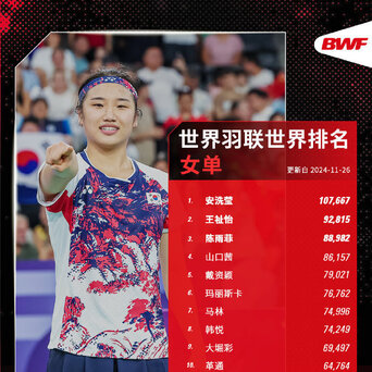 女单:王祉怡第2、陈雨菲第3、韩悦第8