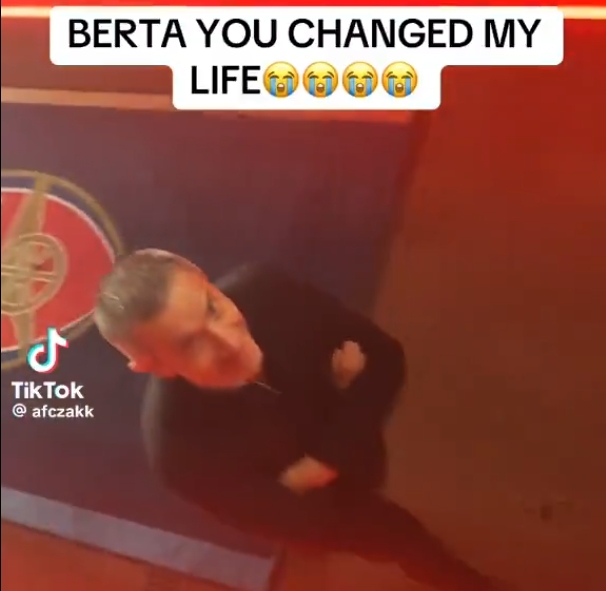 赛后,又名阿森纳球迷在社媒晒出视频,他向正在经由球员通说念的球队总监贝尔塔呼吁,以庆祝球队的大捷,此后者昂首微微一笑以回答。