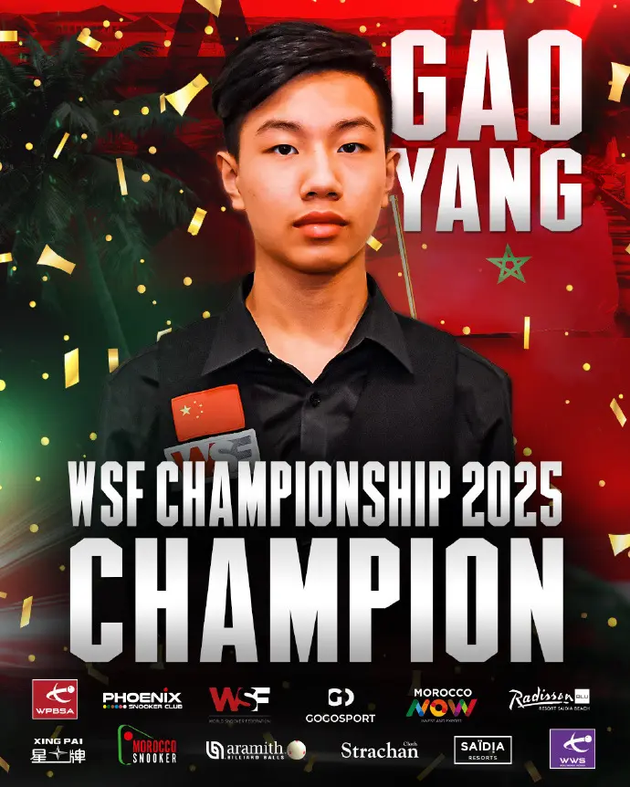 近日,中国前斯诺克职业球员高阳获取2025年“WSF(寰球斯诺克鸠合会)锦标赛”冠军,同期他也获取了为期2年的职业经历,将参加接下来体育录像/图片的斯诺克巡回赛。