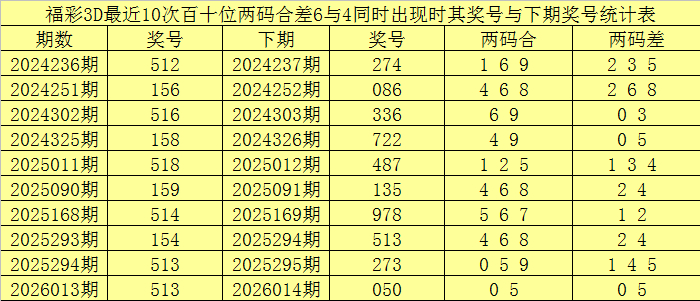 最近10次百十位两码合6与两码差4同期出刻下体育录像/图片