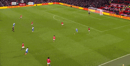 第41分钟,曼联前场苟且球契机,B费一记贴地斩稍微偏出立柱。